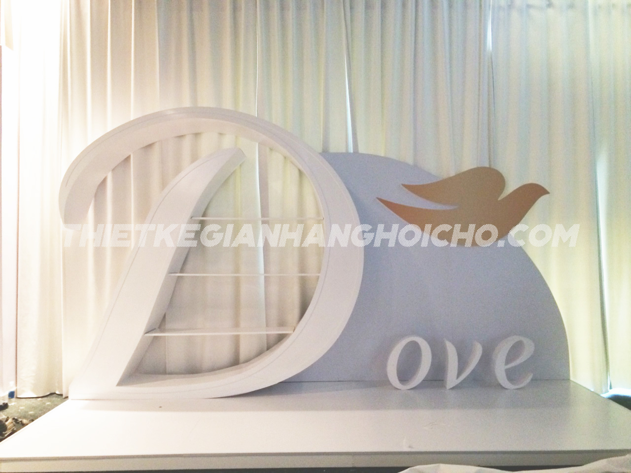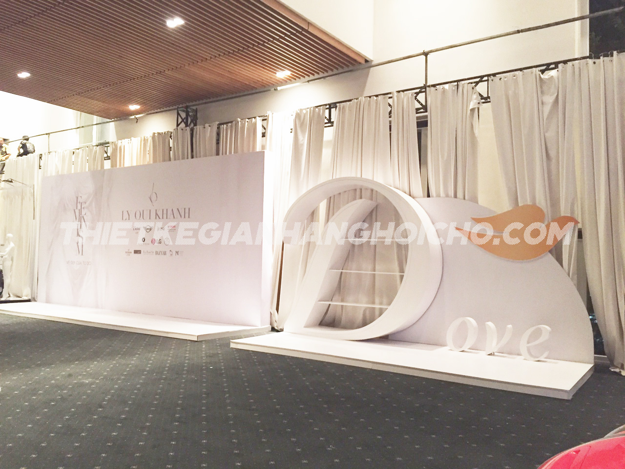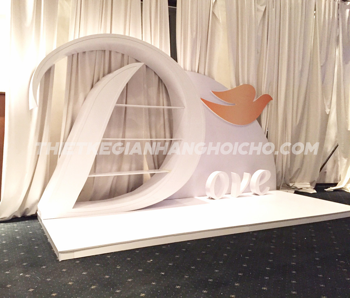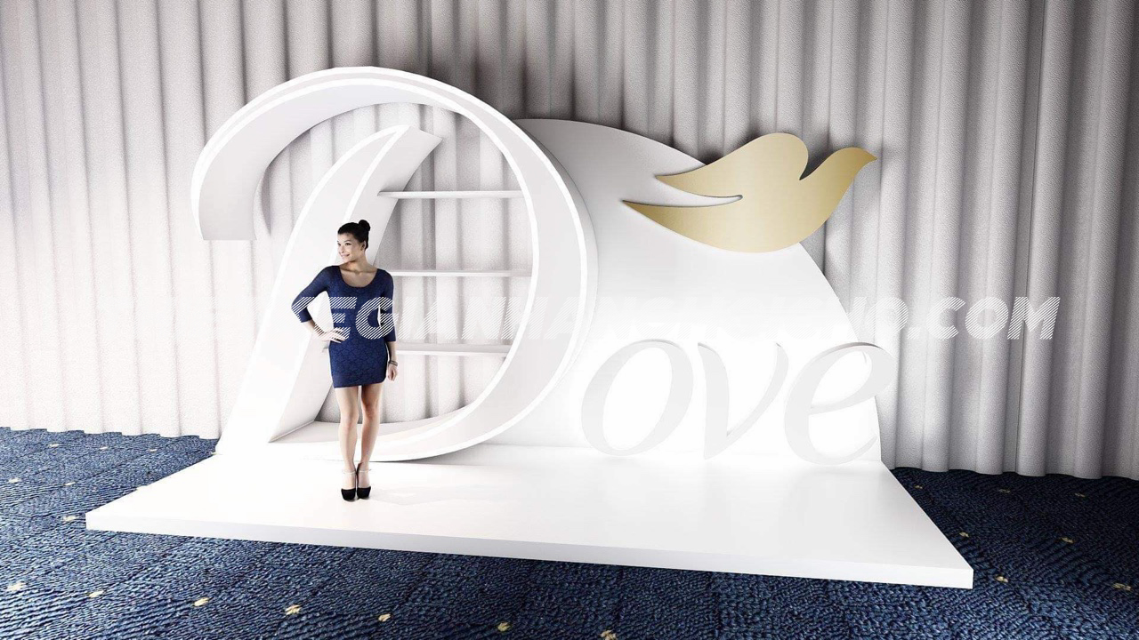 Các thương hiệu lớn không thể không kể đến đó là Dove. Ngay tại show diễn lần này, Dove đã xuất hiện với hình dạng Booth Logo cực kì ấn tượng và không kém vẻ sang trọng. Với quy mô và tính chất sang trọng của show diễn này, cũng như thời gian thi công của show cũng khá hạn chế. Nắm được sự quan trọng và tiêu chí của show diễn lần này, VietArt đã sản xuất booth event một cách thật kĩ lưỡng và cẩn thận. Với quy trình và máy móc công nghệ mới, VietArt đã rút ngắn tối đa được thời gian sản xuất và thi công lắp đặt tại hiện trường.