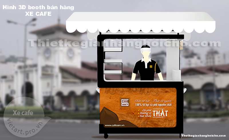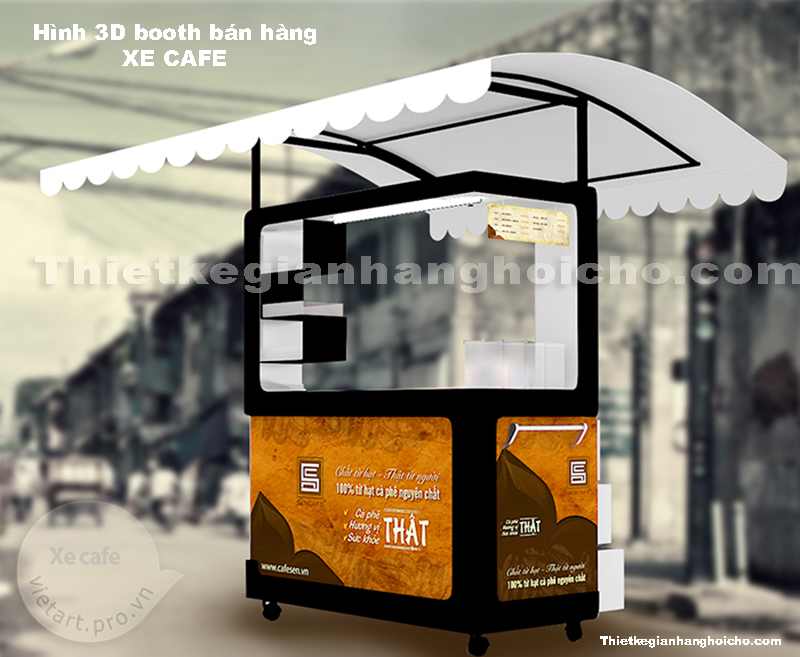 Gian hàng xe cafe lưu động được thiết kế bởi đội ngủ nhân viên nhiều năm kinh nghiệm của công ty quảng cáo Viet Art.